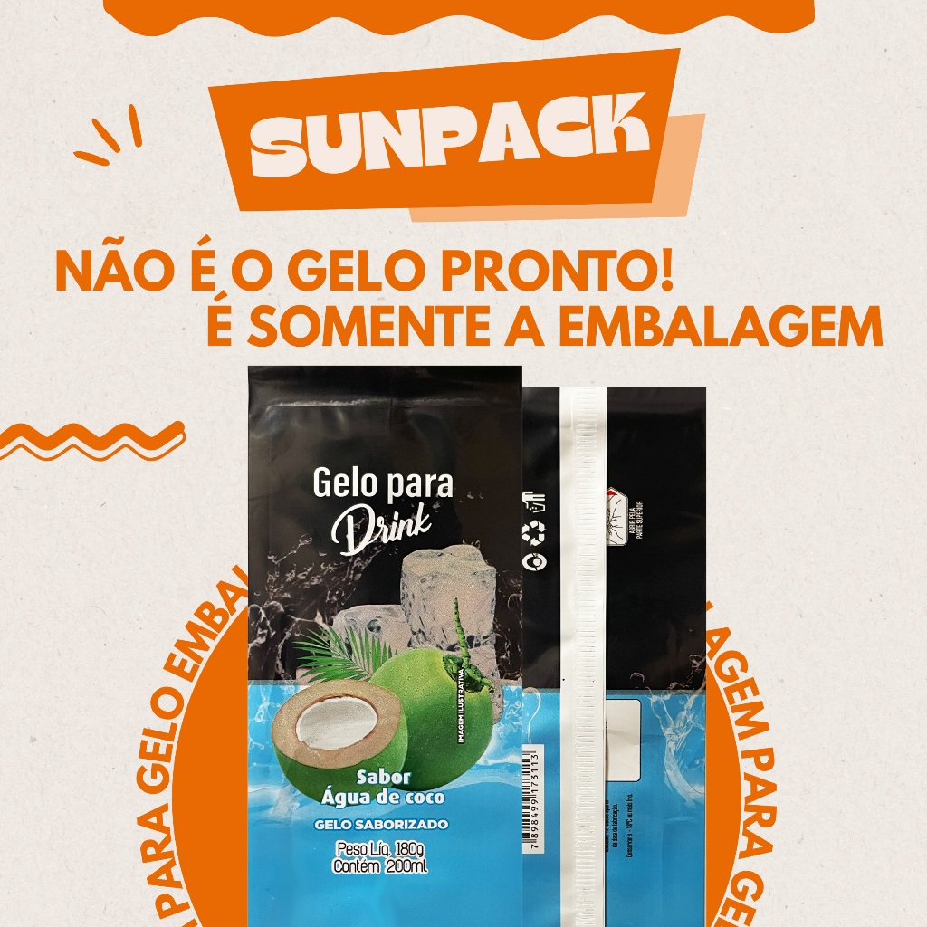 EMBALAGEM PARA GELO SABORIZADO SE TRATA APENAS DA EMBALAGEM, NÃO É O GELO PRONTO! EMBALAGEM PARA FABRICAÇÃO DE GELOS SABORIZADOS. Embalagem para Gelo Sabor/Modelo: Água de coco Medidas: Largura: 9 cm Altura: 20 cm Peso líquido: até 180 gramas ou 200 ml Quantidade: 100 unidades Informações técnicas: Material: BOPP Contém código de barras Contém informações nutricionais Contém ingredientes de fabricação PERGUNTAS FREQUENTES: Posso colocar a mistura para gelo dentro da embalagem? - NÃO! NÃO COLOQUE LÍQUIDOS DENTRO DO SAQUINHO, O GELO DEVE ESTAR PRONTO PARA CONSUMO ANTES DE SER EMBALADO! Eu preciso de mais alguma coisa para fazer meus gelos? - SIM! VOCÊ PRECISARÁ DE ÁGUA, FORMA PARA GELO E MISTURA SABORIZANTE PARA GELO Como eu lacro as embalagens após colocar o gelo dentro? - VOCÊ PRECISARÁ DE UMA SELADORA PARA PLÁSTICOS. VOCÊ ENCONTRA COM FACILIDADE NO MERCADO