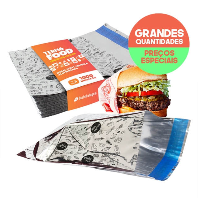 Modelo: Termo Food - Embalagem Térmica Qualidade: Polipropileno biorientado ( BOPP) Aluminizado. Marca: Sua Embalagem Comprimento: 25 cm Largura: 23 cm Lacre: Adesivo Hot Melt (Inviolável) Capacidade: 1 produto A Embalagem Térmica para Hambúrguer, Lanches, Crepe e Tapioca é a melhor opção para o seu cliente transportar seu alimento mantendo quente e conservado por mais tempo, de uma forma simples, higiênica, sem vazar. Mantenha seus lanches sempre quentes e bem embalados Se você vende hambúrgueres, lanches, tapiocas, crepes ou cachorro-quente no delivery, na praça ou no iFood, sabe que a experiência do cliente começa na embalagem. A Embalagem Térmica TERMOFOOD foi desenvolvida para preservar a temperatura dos alimentos por até 40 minutos, evitando vazamentos e mantendo a apresentação impecável. Ideal para food trucks, lanchonetes, vendedores ambulantes e empreendedores do delivery que querem profissionalizar suas embalagens e garantir que o cliente receba seu lanche quente e saboroso, como se tivesse acabado de sair da chapa. Principais Características - Dimensões ideais – 25 cm de comprimento e 23 cm de largura, acomodando hambúrgueres, lanches, tapiocas, crepes e cachorro-quente sem amassar. - Material resistente e térmico – Fabricada em BOPP aluminizado, preserva o calor sem umedecer ou alterar a textura dos alimentos. - Fechamento inviolável – Adesivo Hot Melt que garante segurança, higiene e praticidade, impedindo vazamentos e contaminações. - Benefícios para o Seu Negócio - Mantém a temperatura por até 40 minutos, garantindo um lanche sempre quente e saboroso. - Higiene e apresentação impecáveis, agregando valor ao seu produto e transmitindo mais credibilidade ao cliente. - Facilidade e rapidez na embalagem – basta puxar, colar e lacrar. Seu delivery mais ágil e profissional. - Redução de desperdício e otimização do tempo, evitando retrabalho com embalagens que não vedam corretamente. - Aumento da satisfação do cliente e mais vendas – comida quente e bem embalada fideliza consumidores. Para quem é essa embalagem? Donos de lanchonetes e hamburguerias que querem se destacar no delivery. Vendedores autônomos (praça, food truck, iFood) que buscam praticidade e padronização. Lojistas de embalagens que querem um produto inovador e funcional para oferecer aos clientes. Dúvidas Frequentes Quantas embalagens vêm no pacote? O produto é vendido em pacotes de 100 a 1000 unidades, ideal para quem trabalha com grande volume de entregas. Essa embalagem mantém a crocância do alimento? Sim. O material térmico preserva a temperatura sem deixar o lanche murcho. Posso usar essa embalagem para vender no iFood? Sim. Muitos vendedores utilizam essa embalagem para garantir qualidade e profissionalismo nas entregas. A embalagem é reutilizável? Não. A TERMOFOOD é descartável, garantindo higiene e praticidade em cada uso. Ela suporta alimentos com molhos ou gordura? Sim. Sua selagem evita vazamentos, garantindo que o lanche chegue intacto ao cliente. Atenção: Estoque limitado Garanta agora suas embalagens e leve seu delivery para outro nível. Seu cliente merece um lanche sempre quente e saboroso. Peça já e profissionalize suas entregas.