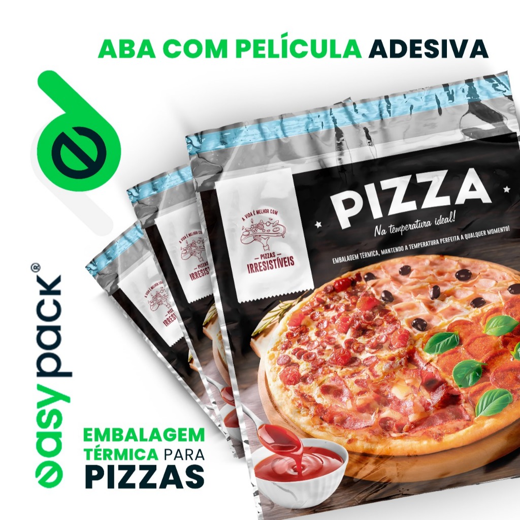 Embalagem Térmica Para Pizza Com Fita Adesiva – 100 unidades Mantenha o seu produto na TEMPERATURA IDEAL por 30 a 40 minutos depois de embalado. uma embalagem de BAIXO CUSTO, PRÁTICA, SEGURA, que vai agregar valor ao seu produto. Ideal para DELIVERY de espetinhos. Especificações Técnicas: Fechamento: Fita Adesiva Auto Colante Medida: 32X35 cm + 4 cm de aba Quantidade por Pacote: 100 unidades Barreira: Térmica, organolépticas, luz, gases e gorduras, preserva todas as características do produto. Por que escolher nossa embalagem? Embalagem é feita em maquinas de última tecnologia com matéria prima premium, conta com soldas reforçadas e barreiras de proteção, que irão manter a temperatura, sabor e aroma do seu produto do nas condições ideais até a entrega ao consumidor final. Temos um dos maiores estoques de embalagem da américa latina, garantindo a entrega do seu produto no menor tempo possível. Para dúvidas nos contate pelo chat da plataforma. Vendido por: EASYPACK EMBALAGENS LTDA - CNPJ: 53.262.479/0001-09