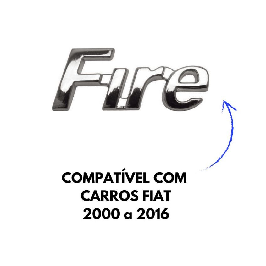 Emblema letreiro FIRE para carros Fiat 00/16 - CROMADO -Medidas: 5 x 2 cm - Aplicação: Escrita FIRE para carros Fiat 2000 á 2016 -Emblema com adesivo autocolante de fácil aplicação. -Valor referente a 01 unidade do adesivo. - As fotos do produto são apenas ilustrativas. - Dúvidas? Mandem em nosso chat!