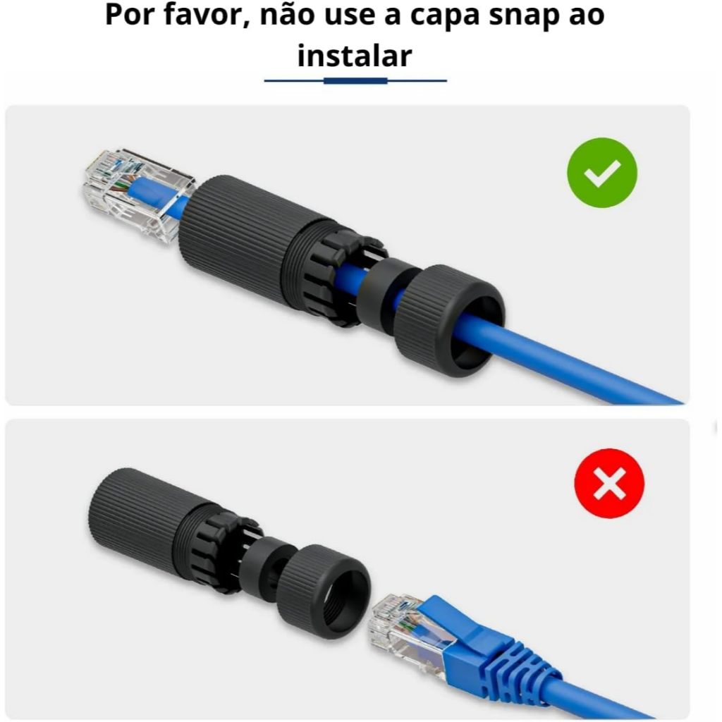 Emenda RJ45 Fêmea para Cabo de Internet UTP, Conector à Prova D'água IP67, Preto