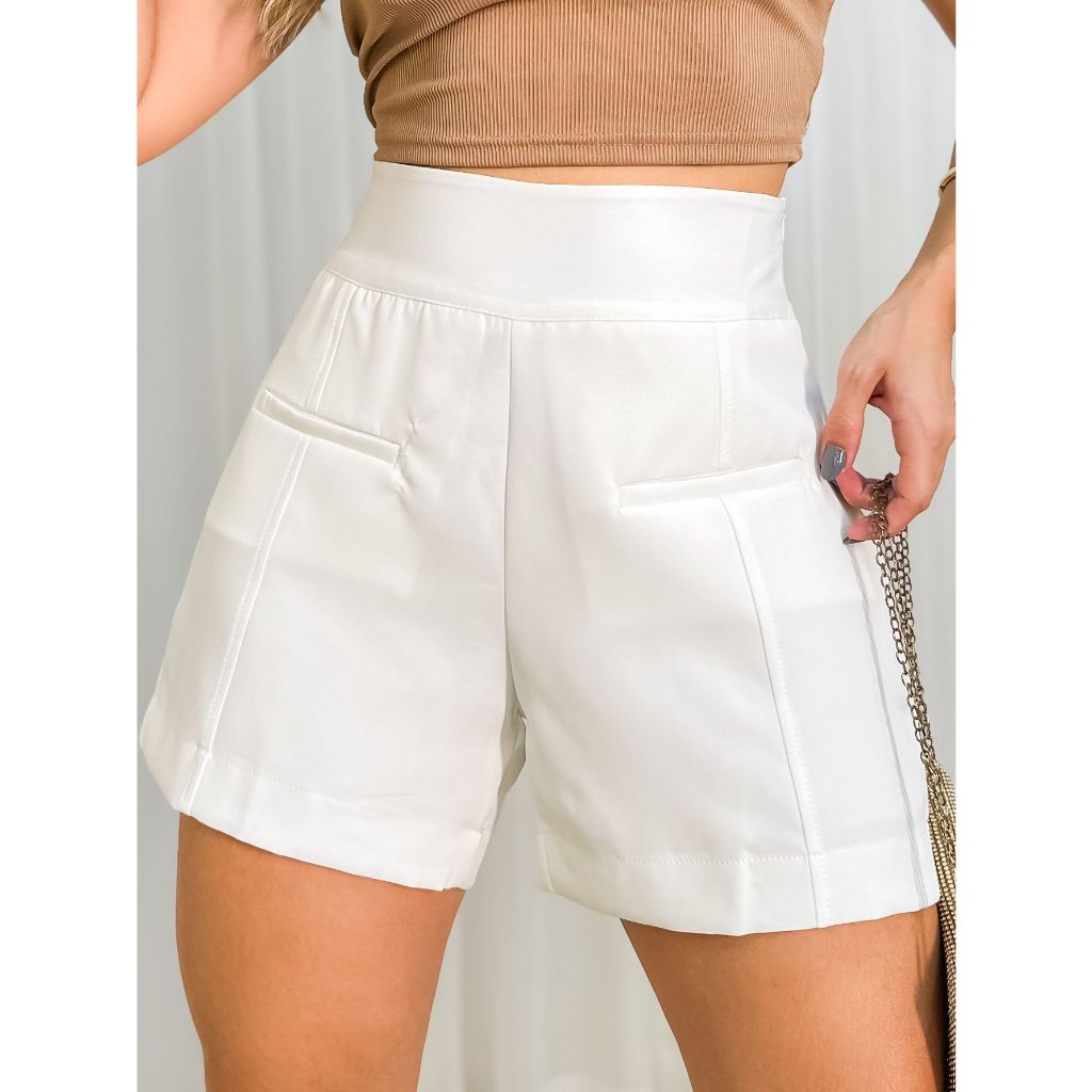 EMILI SHORT ALFAIATARIA FEMININO DETALHADO COM BOLSO FALSO FRONTAL ELEGANTE / ELASTICO NO CÕS.-S780