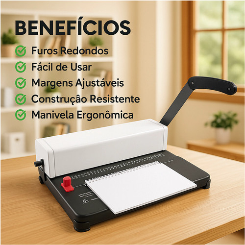 Olá, sejam bem vindos a nossa loja! Conheça um pouco mais sobre o nosso produto:A encadernadora manual Mazzilli A4/Ofício é um produto Importado com alta qualidade e praticidade no manuseio.Equipamentos indispensáveis para papelarias, gráficas e escritórios modernos que querem deixar seus arquivos em ordem. ESPECIFICAÇÕES TÉCNICAS DA ENCADERNADORA:*Encaderna tamanho A4, A5, A6 e tamanhos menores*Perfura até 12 folhas de papel (sulfite 80g) por vez*Perfura 2 capas PVC (0,15mm) por vez*Tamanho dos furos: 4mm*Distância entre os furos: 6mm*Formato dos furos: redondo*Furos compatíveis com ESPIRAL COMUM*Tamanho da encadernadora: 37cm x 11cm x 24cm (L x A x C)*Peso da encadernadora: 4,8 kg*Área útil da base: 15cm x 37cm