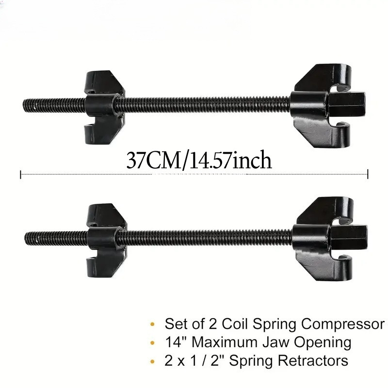 1 Par de encolhedor para molas de suspensão dianteira. Indicado para instalar ou remover molas dianteiras de veículos. Possui compressor de mola, encaixe quadrado interno de 1/2" e abertura de até 370,0 mm. Detalhes: Massa aproximada (peso): 2 kg Material: Aço carbono