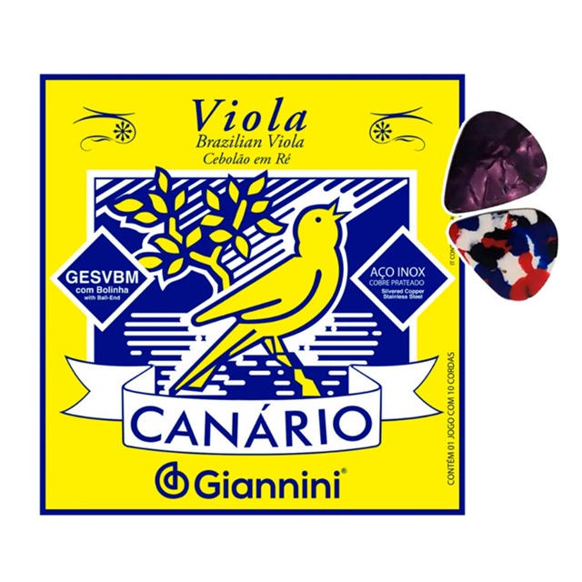 Encordoamento Cordas para Viola Caipira Canário Giannini GESVBM Ré+ 2 Palhetas