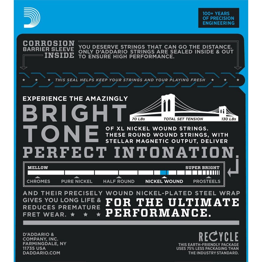 Produto original * lacrado * MADE IN USA * Revendedor oficial D'ADDARIOEncordoamento Daddario 010 Guitarra Exl110b + 1a Corda "mi" Extramodelo EXL110-B (010-046)JOGO DE CORDAS COMPLETO + 1ª corda Mizinha EXTRAESPECIFICAÇÕESMarca: D'ADDARIOModelo: EXL110-BNickel/ Round WoundTipo: encordoamento para guitarra - tensao 010* embalagens resistente à corrosão e umidade;* Feito nos EUA com a mais alta qualidade e desempenho;>>conteúdo da embalagem:Jogo Completo para guitarra 6 Cordas:E: 0.010 (+1 extra)B: 0.013G: 0.017D: 0.026A: 0.036E: 0.046Dimensões ( L x A x P ): 11 x 12,5 x 3cm.Peso : 0,400g.>>sobre a D'Addario - Fazendo cordas por mais de 300 anosAtrás de cada conjunto de cordas D'Addario há mais de três séculos de excelente habilidade. A tradição da família D'Addario começou na pequena cidade de Salle, na Itália, em 1680, onde fizeram vários instrumentos por mais de duzentos anos antes de se mudarem para Nova York em 1905. À medida que a moderna indústria de fabricação de cordéis começou a se desenvolver, o D'Addario A família emergiu como inovadora ao projetar a máquina de bobinamento que a maioria dos fabricantes de cordas ainda usa atualmente. E enquanto suas técnicas se modernizaram, o orgulho que entra em cada conjunto de cordas remonta às raízes mais antigas da família D'Addario.Produto original adquirido junto a MUSICAL EXPRESS (importadora oficial da marca no Brasil). Embalagem original lacrada.