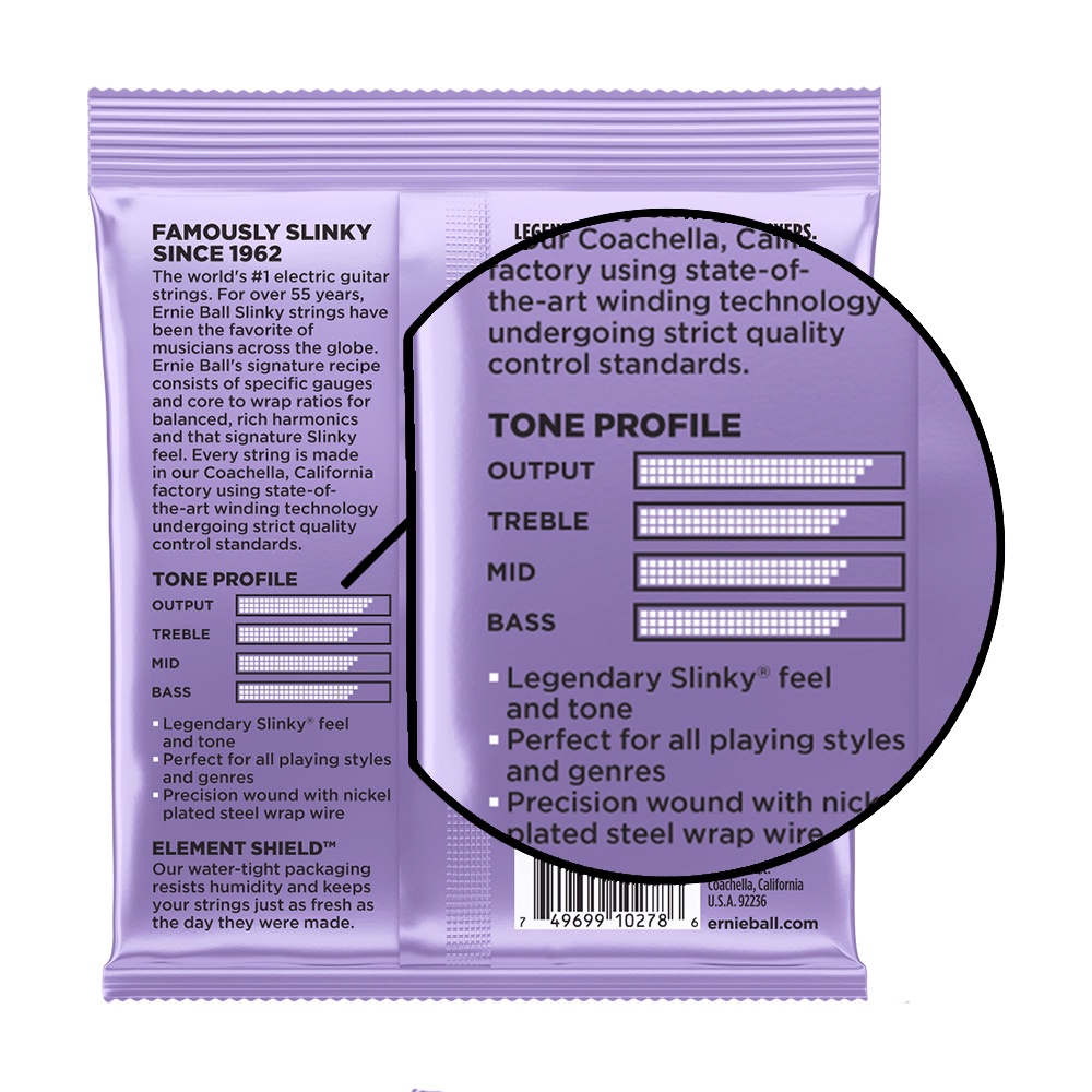 Encordoamento Ernie Ball Ultra Slinky para Guitarra Elétrica 010. As cordas Ultra Slinky da Ernie Ball são amplamente conhecidas pelo seu timbre de classe. Os encordoamentos Ernie Ball passam por um processo de fabricação com os mais rigorosos e exigentes padrões e especificações disponíveis no mercado, garantindo o desempenho ideal, consistência e durabilidade. Encordoamentos Originais adquiridos pela importadora oficial da Ernie Ball no Brasil, Izzo Instrumentos Musicais. Tipos de Instrumento onde se pode utilizar: - Guitarras Elétricas de 6 Cordas Calibre da Cordas (Bitola/Espessura): - 1 - Mi .010 - 2 - Si .013 - 3 - Sol .017 - 4 - Ré .028 - 5 - Lá .038 - 6 - Mi .048 Características do Produto Materiais: Aço Carbono Temperado e Estanhado, Aço Niquelado, Aço Cor: Prateada Itens Inclusos: - 1 Encordoamento para Guitarra Ultra Slinky Ernie Ball 0.10 P02227 - 1 Nota Fiscal Eletrônica Disponibilidade Imediata Imagens meramente Ilustrativas