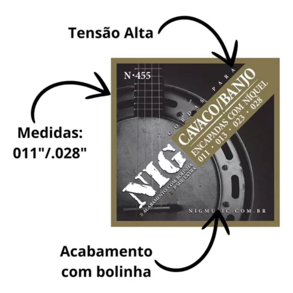 | Encordoamento P/cavaco E Banjo Nig N455 Encapadas C/ Níquel este produto | R$ 18,85 | — | 4.9/5 | 11 |