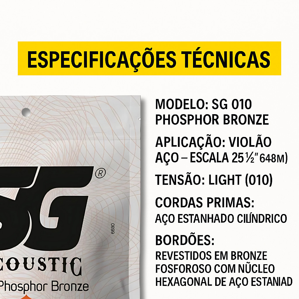 | Encordoamento para Violão Cordas 010 Fosforo Bronze Sg Premium este produto | R$ 35,90 | 41% | 4.2/5 | 4 |
