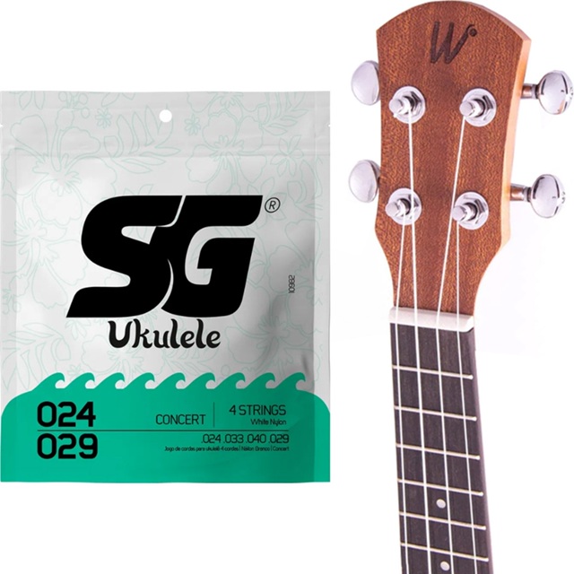 | Encordoamento Ukulele Concert Nylon Branco SG Cordas 024 este produto | R$ 18,99 | 52% | 4.9/5 | 17 |