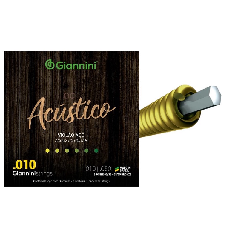 Encordoamento Violão Aço Cordas Giannini .010 Acústico GESWAM + 2 Palhetas