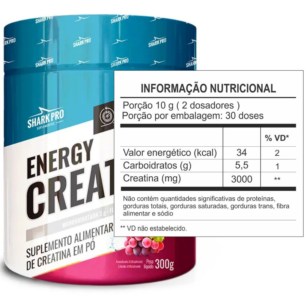 Energy Creatina Flavor Pote 300g Sabor Uva Shark Pro
