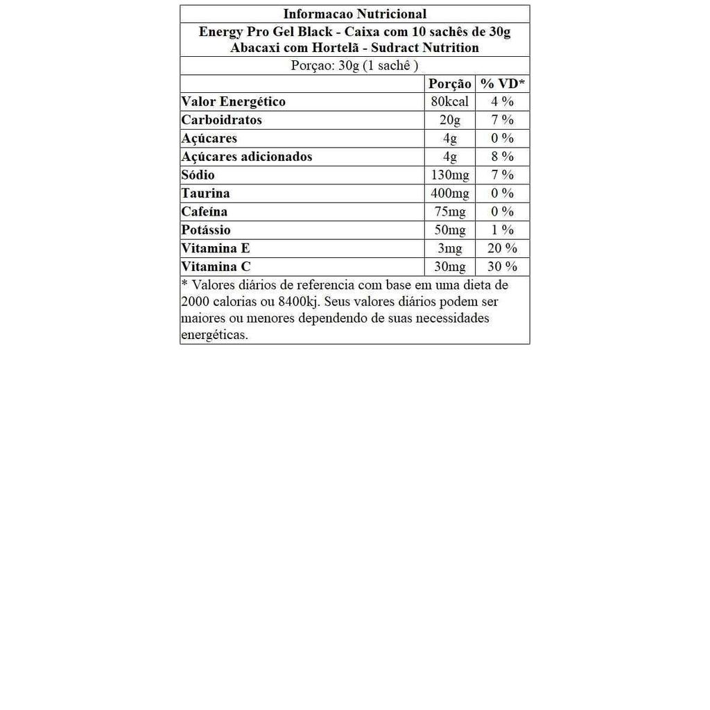 Energy Pro Gel Black - Caixa com 10 sachês de 30g Abacaxi com Hortelã - Sudract Nutrition
