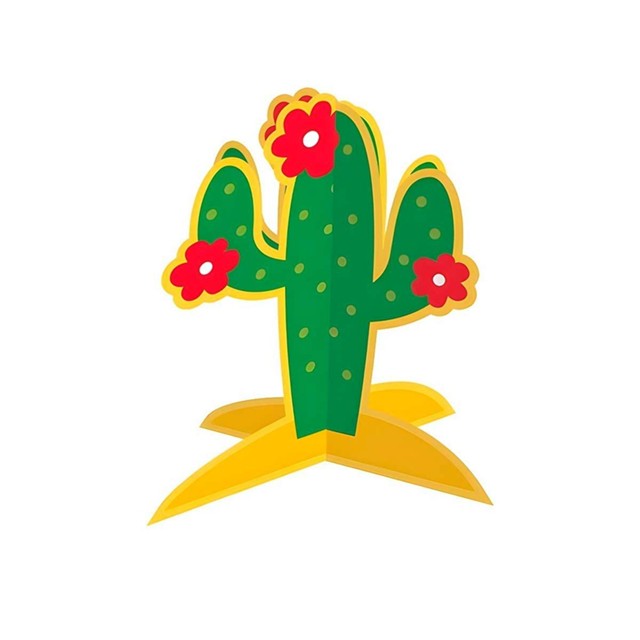 Enfeite de Festa Junina ou Mexicana Cacto 3D Grande Com Base para Decorar