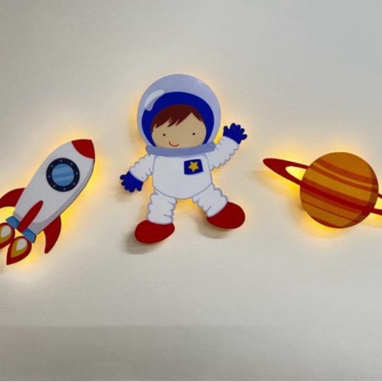 Enfeite de parede no tema astronauta iluminado com Led ou sem iluminação.