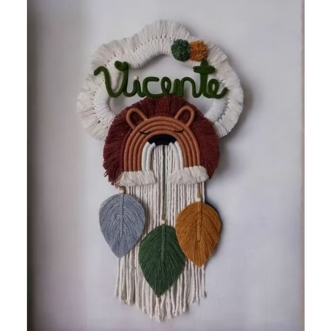 Enfeite de porta infantil feito em macramê. Não precisa necessariamente ser de bichinhos, escolha suas cores e tema pelo chat juntamente com o nome.
