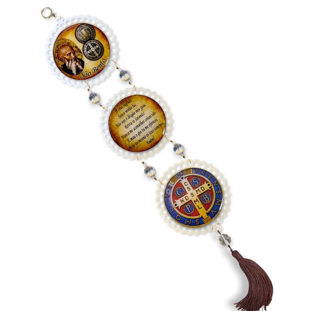| Enfeite De Porta Medalha De Sao Bento Adorno Decorativo este produto | R$ 19,50 | 3% | 4.9/5 | 79 |