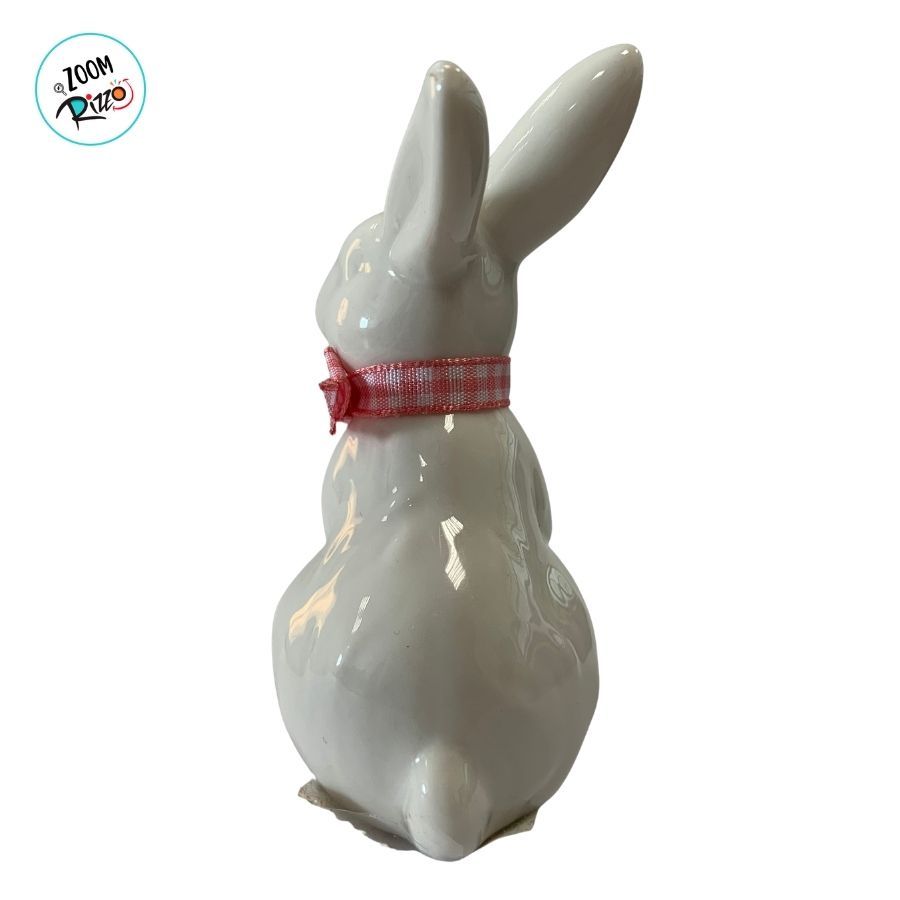 Enfeite Decorativo de Páscoa em Porcelana - Coelho de Pé com Laço - Rosa - 6x5x9,5cm - 1 unidade - Rizzo