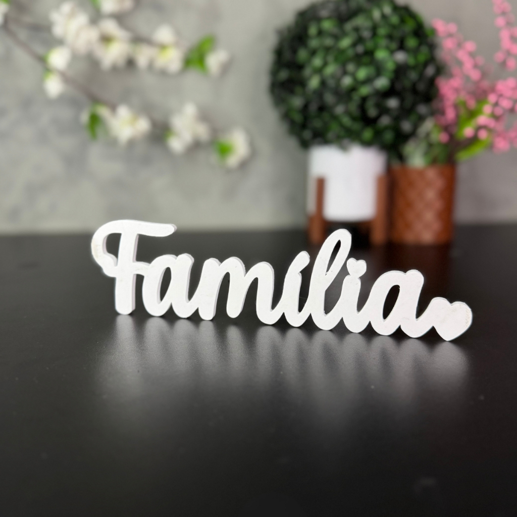 Enfeite decorativo letreiro FAMÍLIA com coração - Decoração para CASA, Estantes, Salas Palavra decorativa
