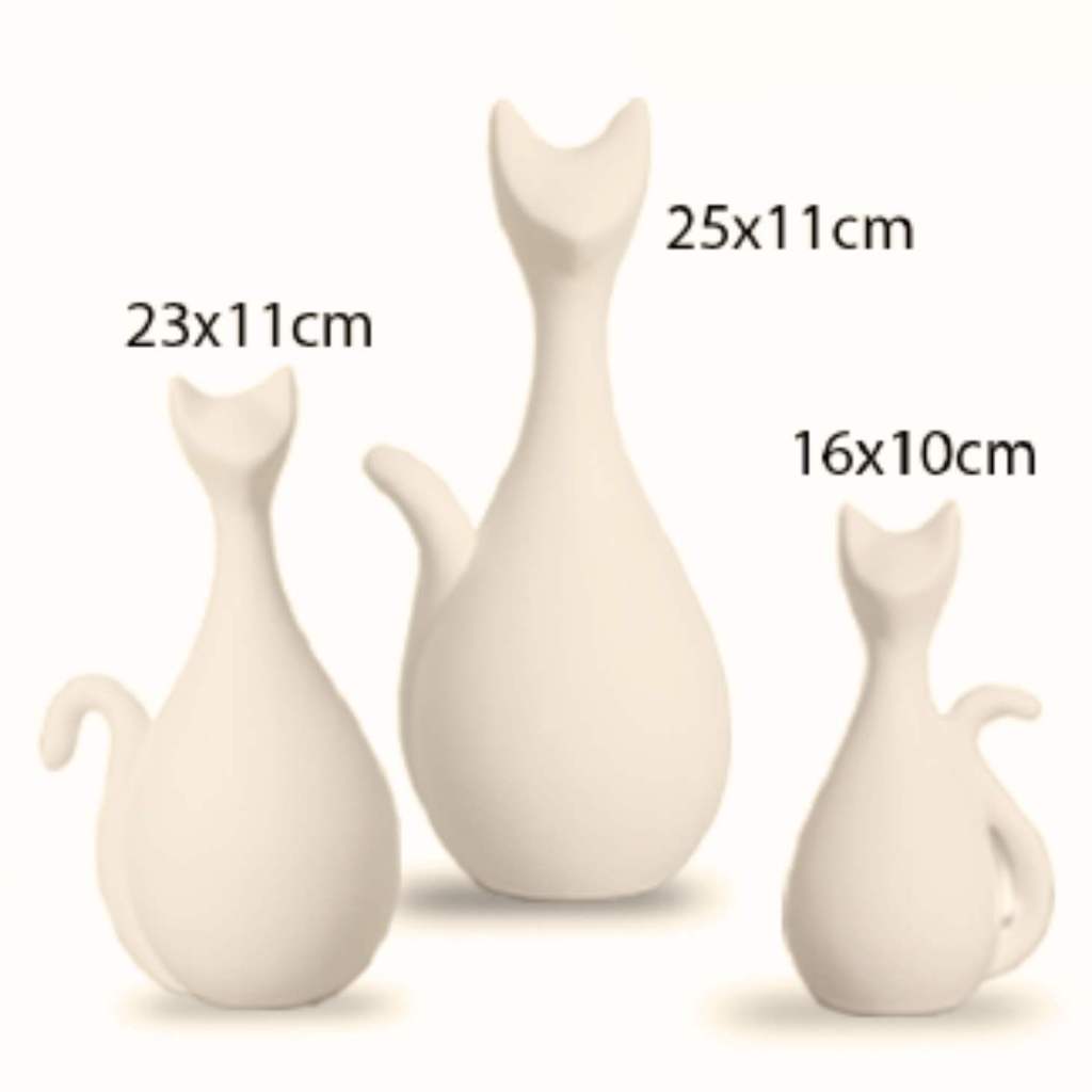 Bem-vindo à CASA BONITA PORTO FERREIRA a sua loja de Casa e Decoração na internet. Com um simples click você tem acesso a produtos de alta qualidade para tornar o seu lar ainda mais bonito e aconchegante. Aqui você encontra o melhor para sua casa direto da Capital Nacional da Cerâmica Artística e Decoração! • Envio IMEDIATO • FRETE Grátis – vide regras • PRONTA ENTREGA – Enviamos para todo Brasil • NOTA FISCAL • Peças cuidadosamente SELECIONADAS • Ações de SUSTENTABILIDADE – Reutilização de embalagens • Embalagem SEGURA especiais para evitar quebra • GARANTIA por quebra no transporte ou seu dinheiro de volta Você está conhecendo um produto SUSTENTÁVEL de excelente QUALIDADE com ótimo acabamento Apresentamos as encantadoras Estátuas Família Gato em Cerâmica Artística, a escolha ideal para quem busca elegância e personalidade na decoração. Perfeitas para embelezar qualquer ambiente, essas estátuas são feitas com cerâmica de alta qualidade, garantindo durabilidade e um acabamento impecável. Adicione um toque de arte e sofisticação ao seu espaço com as Estátuas Família Gato. Um presente perfeito para amantes de gatos e de arte! **** ESTATUA FAMILIA GATO Trio de gatinhos para enfeitar sua sala, quarto, escritório, etc Material: Cerâmica Artística Orgânica Com proteção na base para não riscar os moveis. Medidas: Gato G: 25 cm x 11 cm. Gato M: 23 cm x 11 cm. Gato P: 16 cm x 10 cm. Comprar na CASA BONITA PORTO FERREIRA é garantia de QUALIDADE, SEGURANÇA E SATISFAÇÃO. Nossa equipe Seleciona e Embala cada peça de maneira adequada para o transporte, mas em caso de danos você tem nossa GARANTIA! Fale conosco por Mensagem! Observação: A cor da foto pode variar de acordo com as configurações do monitor. São características comuns das peças de Cerâmica Artística alguma variação na cor e/ou na forma delas.