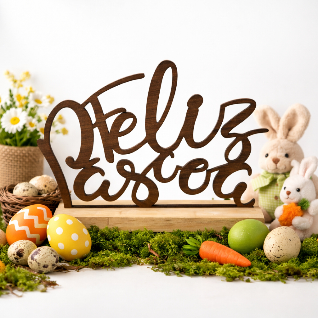 Enfeite Feliz Páscoa em MDF Decorativo de Mesa Base Madeira Decoração
