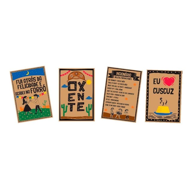 Enfeite Festa Junina Parede 4 Quadros Decorativos Com Frases Típicas do Sertão