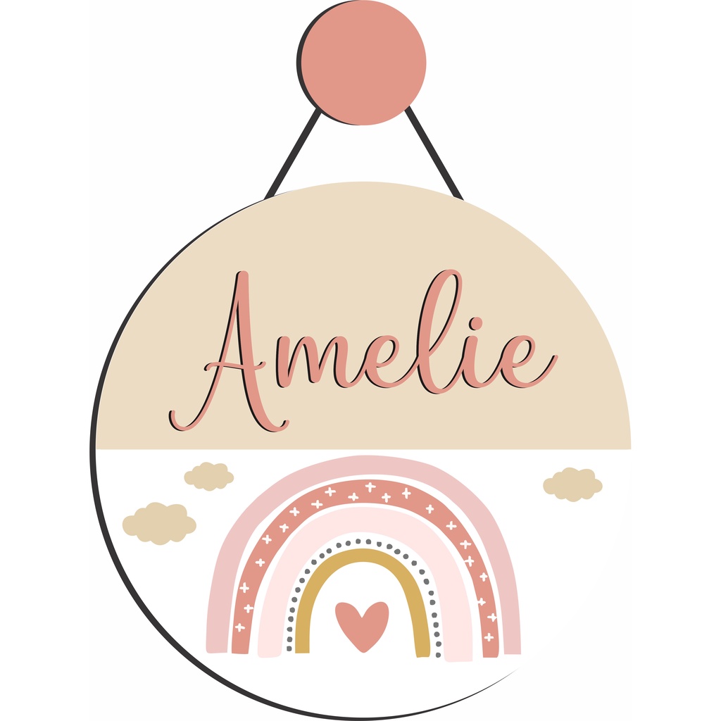 Enfeite Porta Maternidade Arco Iris Boho - Nome personalizado - Decoração para quarto! GUIRLANDA