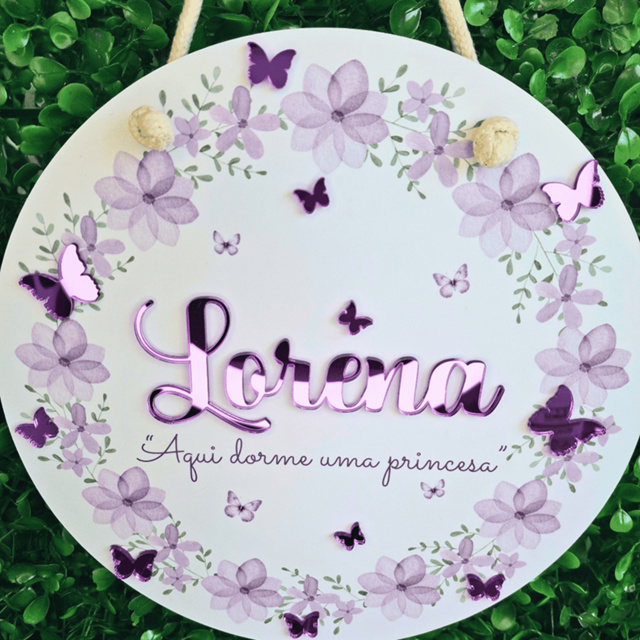 Nossos produtos são desenvolvidos em alto padrão, e confeccionados com muito carinho! São para quem deseja QUALIDADE E DURABILIDADE Após a compra envie IMEDIATAMENTE NO CHAT O NOME A SER PERSONALIZADO, EM CASO DE NÃO ENVIO DO NOME O PRODUTO SERÁ ENVIADO SEM PERSONALIZAÇÃO. ***ATENÇÃO AS MEDIDAS**** Modelo Padrão PLACA COM 20 CM ( até 1 nome composto, ou 2 nomes simples) Modelo Grande PLACA COM 28 CM ( até 3 nomes simples, ou 2 compostos) ESCOLHA O TAMANHO QUWE ESTEJA MAIS ADEQUADO A SUA EXPECTATIVA, caso necessário faça uma simulação com régua. São 5 dias ÚTEIS para a confecção do produto NOME: ( e apliques caso contenha na variação escolhida) em acrílico espelhado cor LILÁS conforme anúncio. PENDURADOR: BORBOLETA acrílico espelhado LILÁS. MATERIAL: mdf 3mm IMPRESSÃO: de ALTISSÍMA QUALIDADE DE RESOLUÇÃO, em adesivo com película de super proteção fosca(NÃO PERDE A COR COM O TEMPO, A IMPRESSÃO DURA 100 ANOS, É RESISTENTE A UMIDADE) acabamento refinado, pode ser limpo com pano levemente úmido. Já vai prontinho para instalação! Com cordão e fita dupla face pra não precisar furar a porta! NÃO ENCONTROU O SEU TEMA? Entre em conta via chat e verifique antes da compra a possibilidade de desenvolvermos ele especialmente para você S2 (NÃO FAZEMOS ALTERAÇÕES NOS TEMAS JÁ DISPONÍVEIS) Podem haver alterações de cor de acordo com seu monitor DÚVIDAS? Estaremos a disposição no chat.