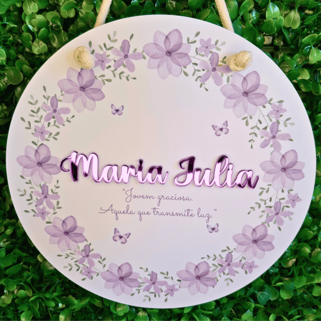 Enfeite Porta Maternidade Placa Guirlanda Jardim Floral Flores Lilás