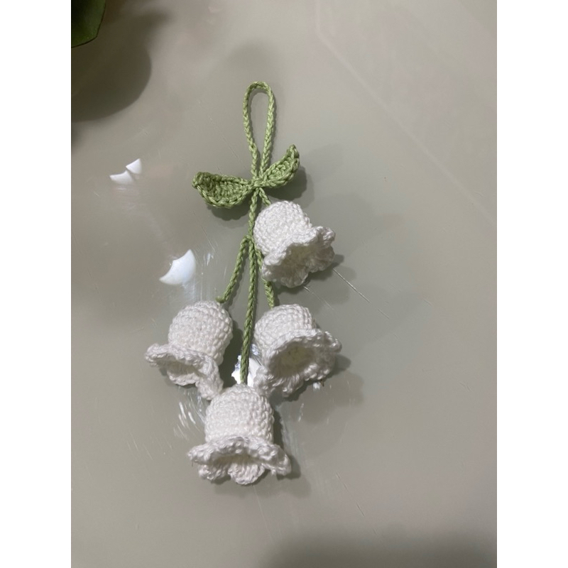 Enfeite retrovisor de carro - flor Lirio do Vale de crochê.