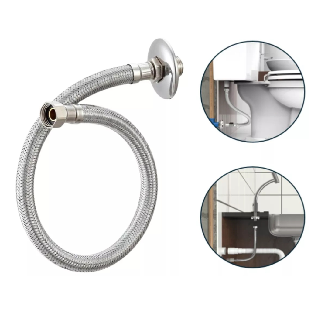 Engate Flexível Trançado Mangueira Inox P/ Banheiro Torneira Caixa Acoplada 30 cm 40 cm ou 60 cm