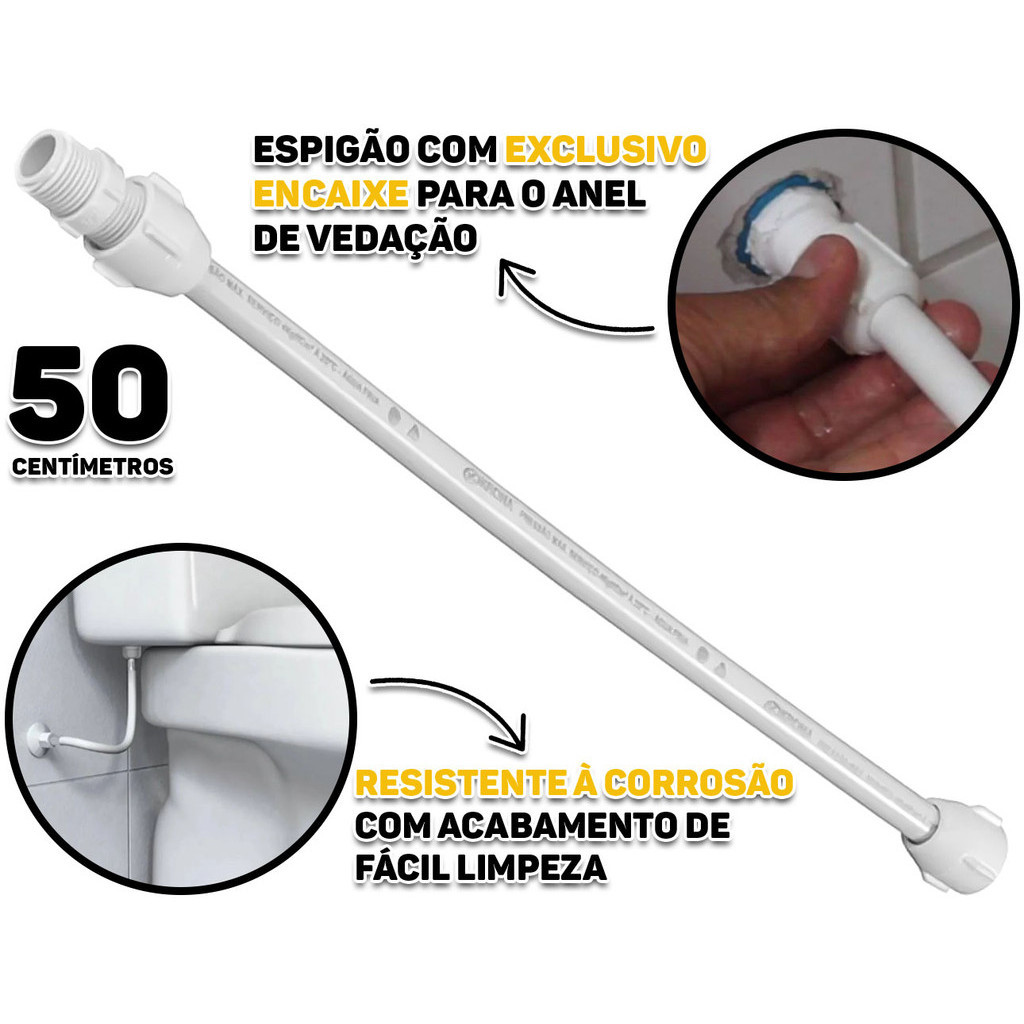 Engate Rabicho Flexível Água Fria Para Torneira Caixa De Descarga Lavatório Branco 50cm Tigre