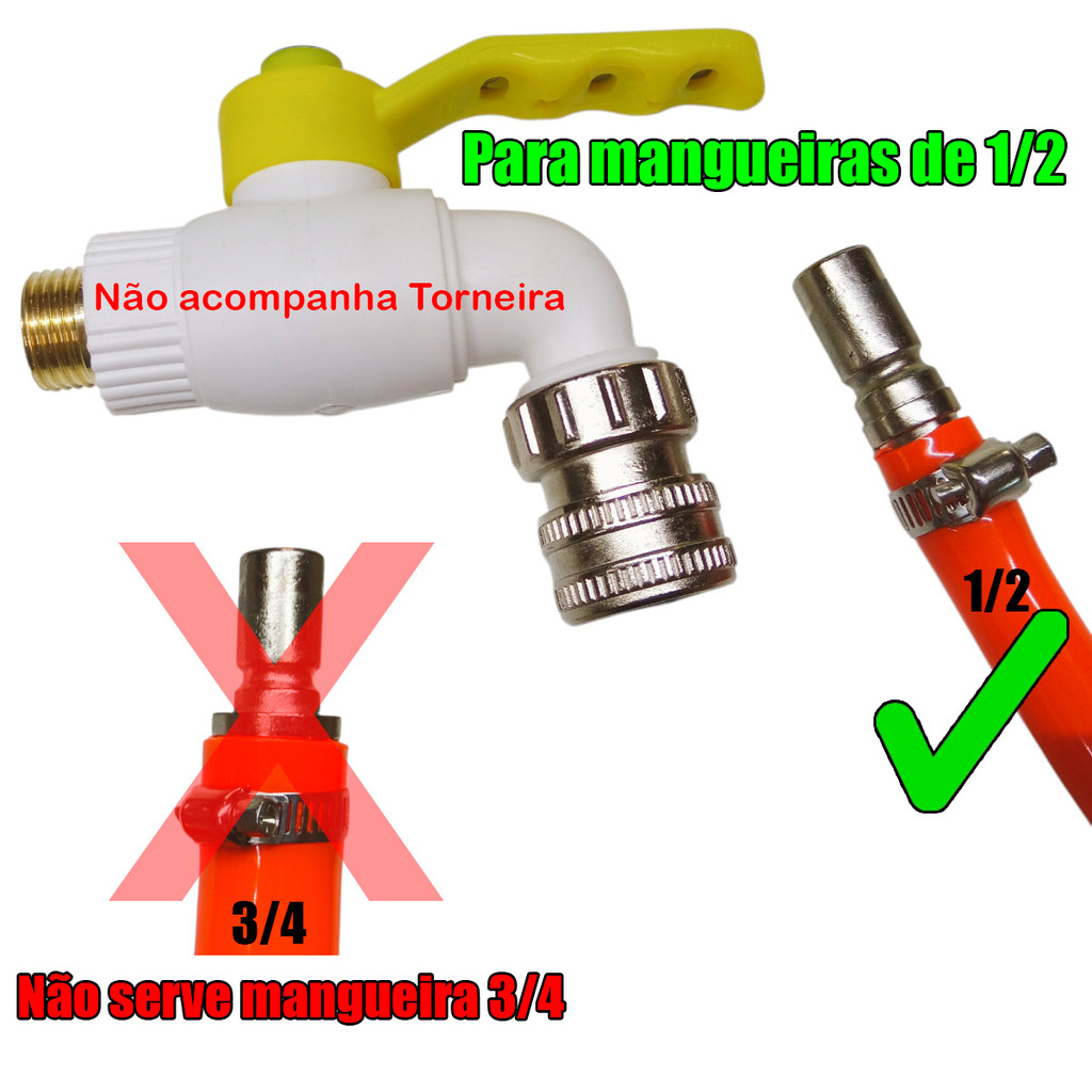 | Engate Rápido para Torneira 3/4 e Mangueira de 1/2 de Metal Cromado... este produto | R$ 27,24 | — | 4.9/5 | 6 |