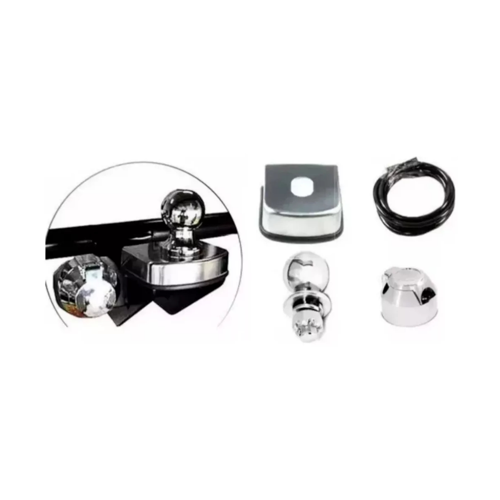 **ESTE ENGATE NÃO SERVE PARA TRANSBIKE, ELE É FEITO SOMENTE PARA CARRETINHAS!!** Com o Engate seu veículo ganha mais uma opção no transporte de cargas. Com força do reboque seu veículo vai conseguir tracionar um peso maior, ampliando sua capacidade de carga. Fabricado em Aço resistente e excelente acabamento possui homologação pelo INMETRO, somando mais proteção e segurança para a parte traseira do veículo. Especificações Técnicas: Tração máxima:500 Kg (verifique a limitação de seu veículo) Fabricado em Aço Carbono altamente Resistente Pintura Eletrostática a Pó Excelente Acabamento Esfera Cromada Maciça de 50mm de Diâmetro Tomada totalmente funcional para Instalação Elétrica Não possui Superfícies Cortantes Encaixe Sob Medida Plaqueta Indicativa com Dados Técnicos Homologado pelo INMETRO e normas exigidas pelo Órgão Fiscalizador Conteúdo da Embalagem: 01 Engate 01 Bola Cromada 01 Tomada Elétrica 01 Cabo Elétrico Kit de Fixação Manual e Certificado de Garantia Imagens meramente ilustrativas.