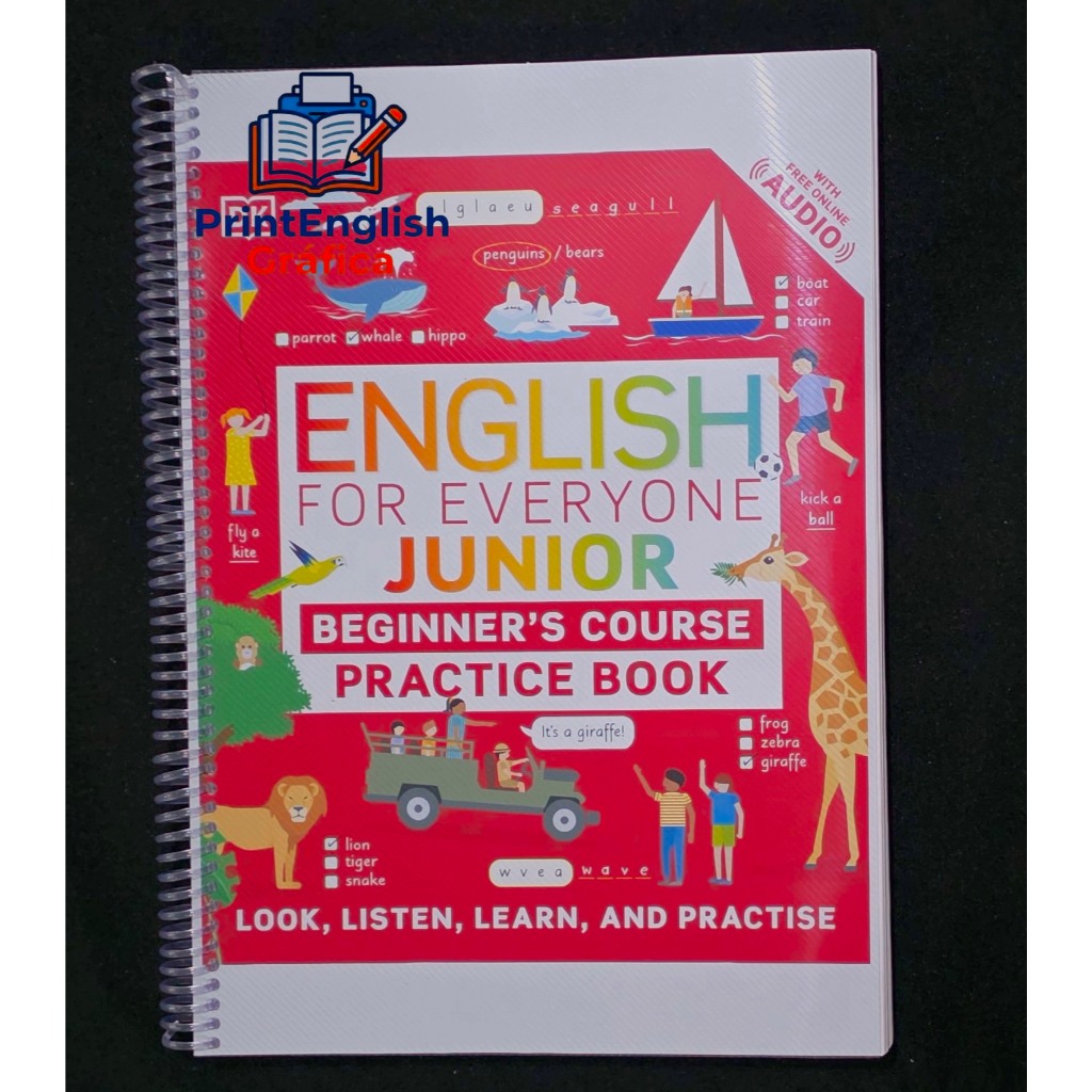English for Everyone Junior ( Beginner`s Course e Practice Book) 📚 Versão impressa de alta qualidade – ideal para seus estudos de inglês! 📦 Você recebe conforme a opção escolhida: ✔️ Course Book (colorido) – se escolher apenas o Student Book ✔️ Practice Book (colorido) – se escolher apenas o Practice Book ✔️ Kit completo (Course Book e Practice Book) – se escolher o kit ✔️ Os áudios você pode acessar pelo App Ingles para todos ou pelo site da DK.com ✔️ Vídeos reais do produto para sua segurança na compra ✨ Diferenciais do produto: ✅ Impressão em alta definição com tinta pigmentada (resistente à água) ✅ Encadernação em espiral transparente: prática e durável ✅ Capa frontal transparente + capa traseira preta protetora ✅ Capa interna impressa em papel matte 230g com acabamento profissional ✅ Papel A4 90g resistente e de qualidade 📐 Formato: A4 (29,7 x 21,0 cm) 💬 Ficou com dúvida? Chame a gente no chat! 🛒 Garanta já o seu material e estude com confiança e qualidade!
