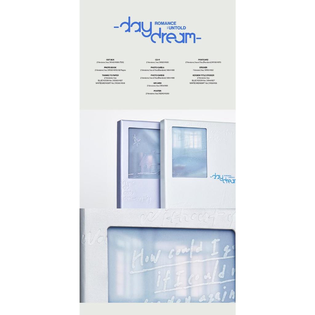 ENHYPEN - ROMANCE : UNTOLD -daydream- 📅Release Date : 11 / 11 / 2024 💗Inclusion - Out Box - Photo Book : 92 pages - 1 CD - Thanks to Paper : 1ea - Poster : 1ea - Sticker : 1ea - Version Title Sticker : 1ea - Postcard : Random 1ea - Photo Card A : Random 1ea - Photo Card B: Random 1ea - QR Card : 1ea - Instant Photo : Randomly included in first press albums / 200ea 🖤 First Press Only🖤 💚WEVERSE SHOP : Random Selfie Photocard 1ea + Random Selfie Photo Frame 1ea 🐨 Welcome to ALIKO 🐨 💯 100% official and sealed products shipped from Korea ⭐ Your purchase is counted on HANTEO and CIRCLE charts 💨 Aliko provides safe packing service with love🥰 🚀 Your order will be shipped out within shipping deadline 🚀 Pre-order products will be shipped out within few days after the release 📌 Please film an unboxing video. NO REFUND WITHOUT AN UNBOXING VIDEO. 📌 OUT BOX is simply for protecting the product. Dent, scratches or discoloration on the out box can't be exchanged or refunded.