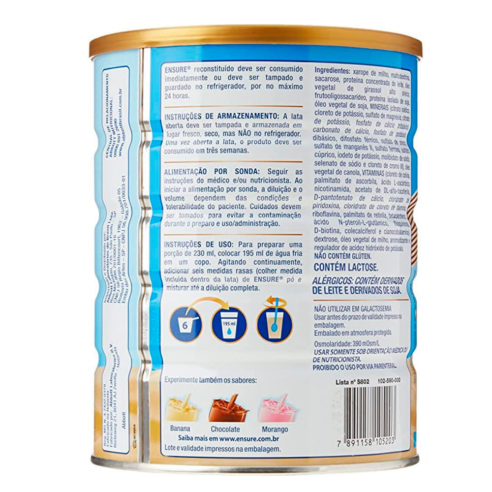 Suplemento Adulto Ensure Pó Sabor Baunilha Ensure é um suplemento nutricional completo e balanceado recomendado para pessoas que buscam força e resistência. Possui proteínas para os músculos, cálcio e