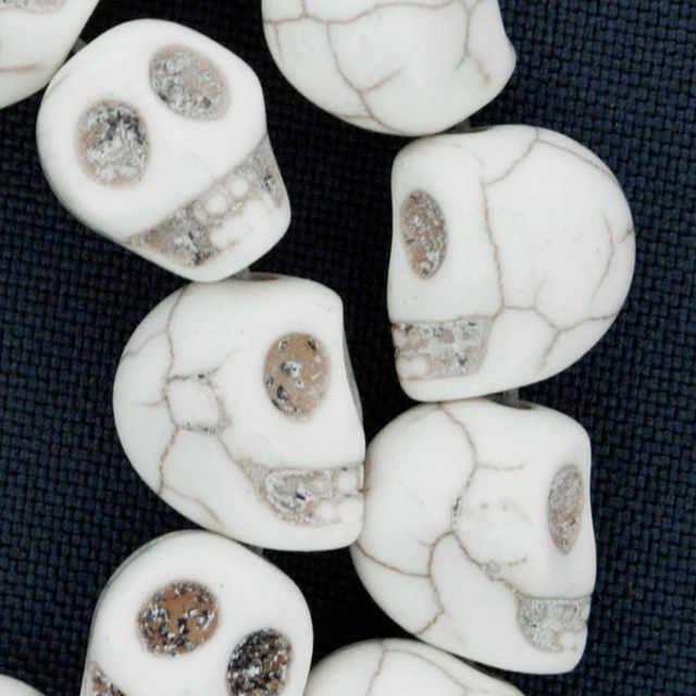 Entremeio Miçanga Caveira de Pedra Howlita Branca para Pulseiras Guias - 12x10mm