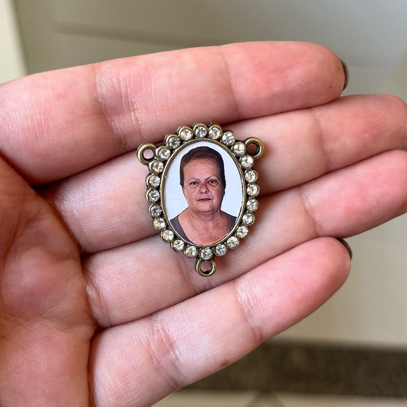 Entremeio Personalizado Com foto a sua escolha e detalhe em strass em volta da foto. Nos envie a foto que deseja e a cor do strass pelo chat para que seja produzido. Tempo de produção de até 7 dias. Podendo ser enviado antes. obs: caso não seja enviado a foto e a cor do strass, o mesmo será enviado sem nada. Material: Zamac Cor: níquel, ouro velho, dourado Tamanho total: 3cm x 2,5cm Tamanho foto: 2cm x 1,5cm