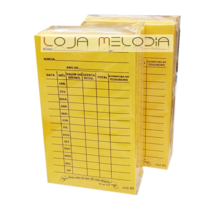 | Envelope Anual De Dizimo Amarelo P/ 100 Unidades Cod 40 este produto | R$ 24,49 | — | 4.8/5 | 12 |