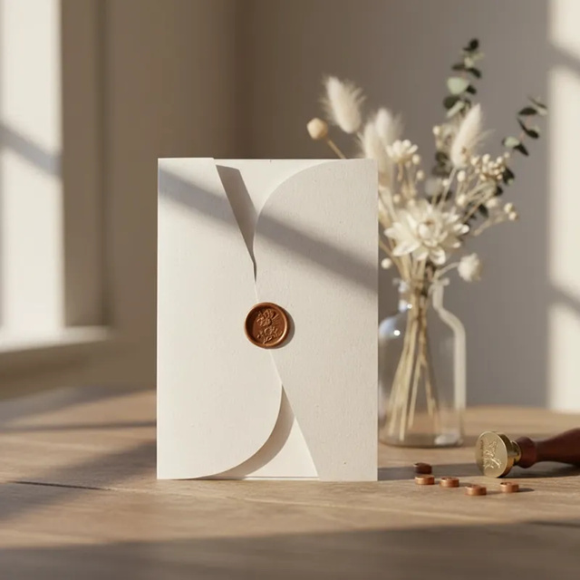 Envelope Elegance Dobrado Reciclado 240g tam 14,5x21cm + lacre de cera dourado ou bronze