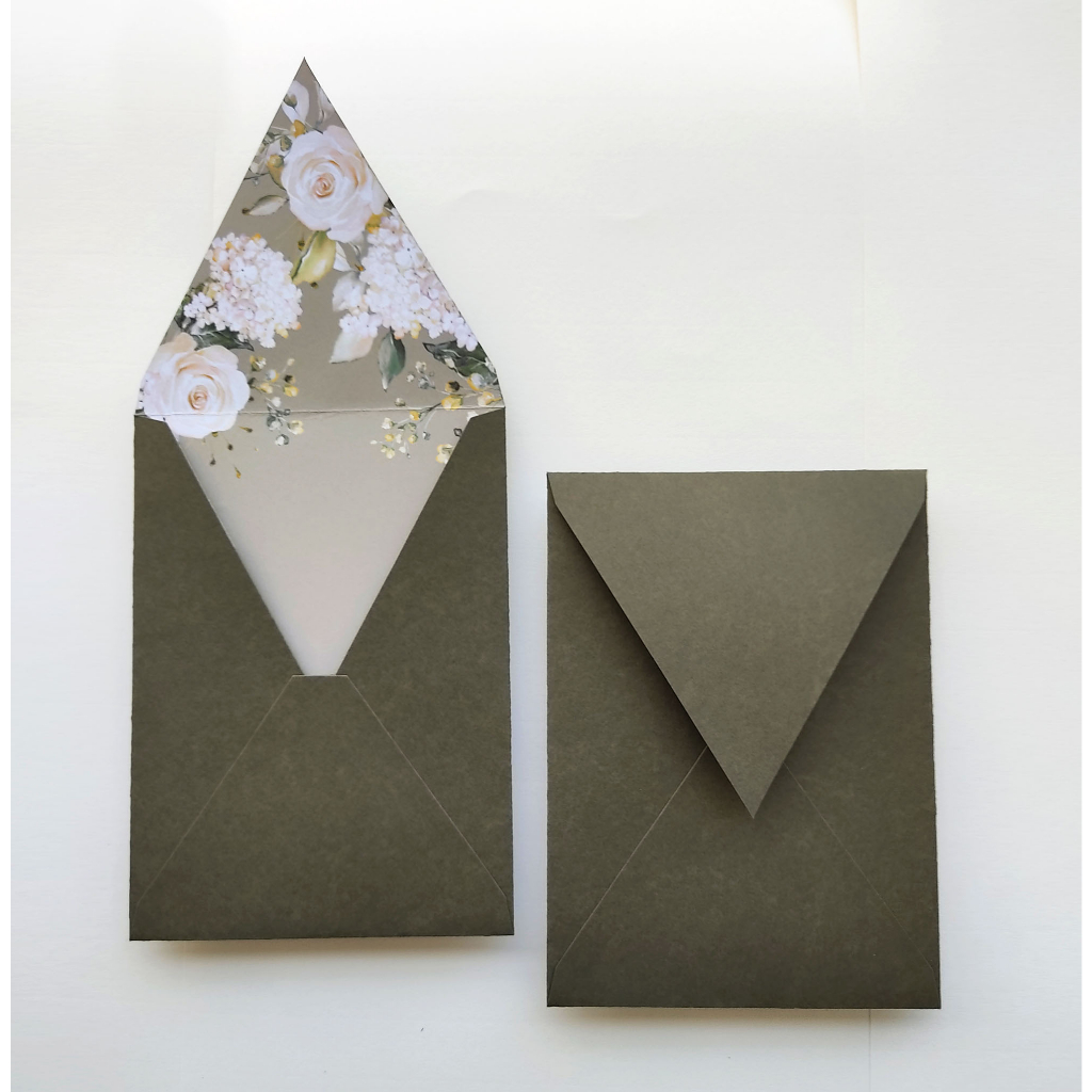Envelope para Convite 15,5x21,5 - Vertical - Verde Oliva com rosas - 15 unidades