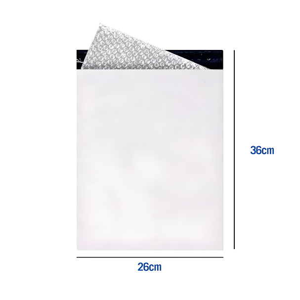 UTILIZE OS ENVELOPES DE SEGURANÇA COM BOLHA EM SEU E-COMMERCE E PROPORCIONE UMA ÓTIMA EXPERIÊNCIA DE COMPRA AOS SEUS CLIENTES. O Envelope com Plástico Bolha para Correios é produzido em polietileno coextrusado em 3 camadas, seu interior é preto e o exterior branco. Seu revestimento interno de alta qualidade permite maior proteção de suas encomendas. Tendo em vista que o sistema com bolha foi desenvolvido com o intuito de proporcionar um transporte com mais segurança, trazendo menor impacto ao produto interno durante a viagem. Além de causar efeito blackout mantendo o sigilo do seu envio. Por ser um produto leve e de fácil manuseio, o envelope com plástico bolha trará uma grande economia. Os envelopes possuem um sistema de fechamento adesivo Hot-Melt, que proporciona um fechamento seguro e INVIOLÁVEL, impossibilitando a abertura sem que o envelope seja danificado, garantindo a segurança e qualidade dos seus envios até o destino. DIMENSÕES E CARACTERÍSTICAS Quantidade: 100 unidades Medidas: 26x36 cm Aba: 3 cm Espessura: 0,10 mm (100 micras) Cor Externa: Branco Interior: Vestido pelo Plástico Bolha Material: Polietileno Coextrusado Fechamento: Lacre com cola Hot-Melt PRINCIPAIS USOS: • Embalagem para e-commerce • Envelope para correios • Courrier e transportadoras • Envio de documentos e notas fiscais • Bancos e instituições financeiras