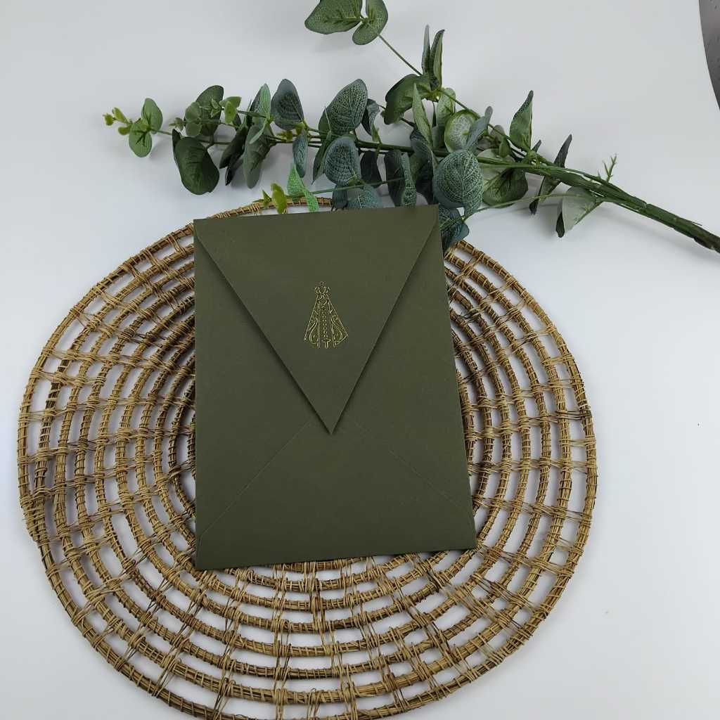 Envelope Verde Oliva para Convite de Casamento Bico Vertical com Nossa Senhora – Envelope para convite,, bodas