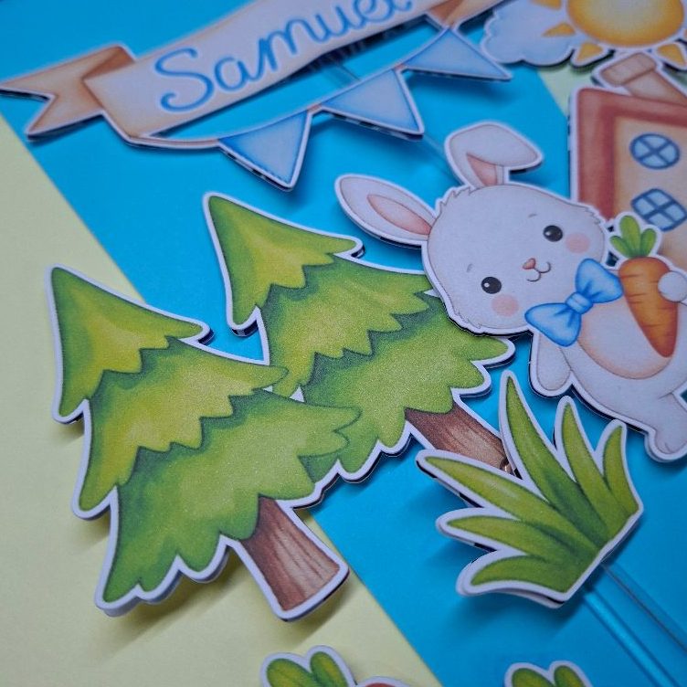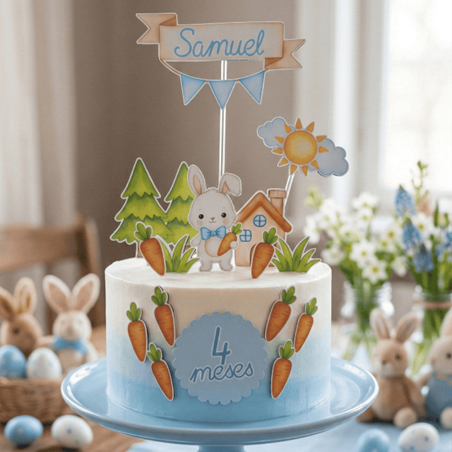 Envio 24h | Topo de Bolo Mesversário Páscoa Menino | Personalizado Nome e Idade | Páscoa Infantil | Cenouras e Casinha |