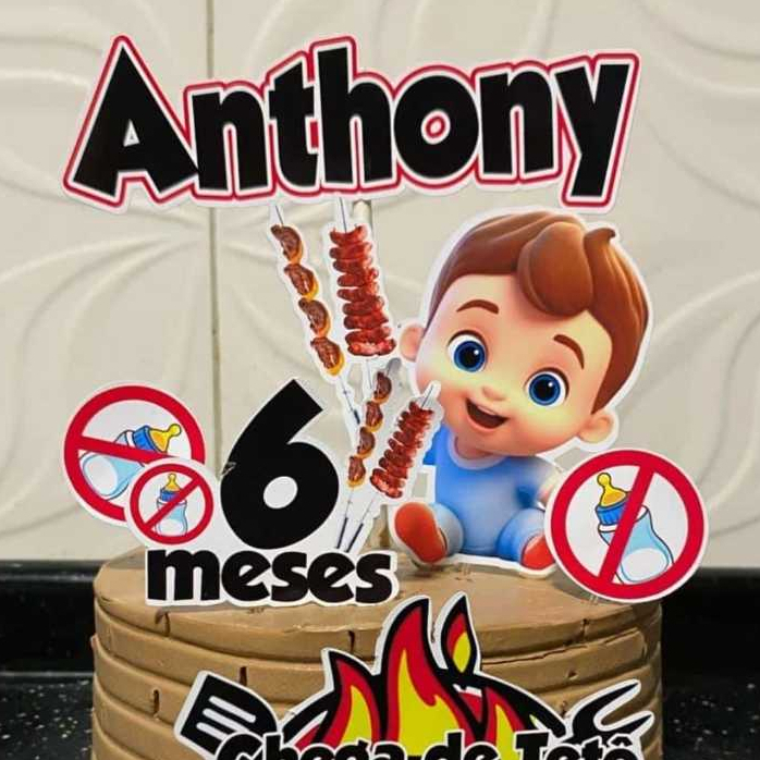 Envio em até 24h Topo Topper de Bolo Decoração De Bolo Enfeite Chega de Tetê eu quero Churrasco Personalizado