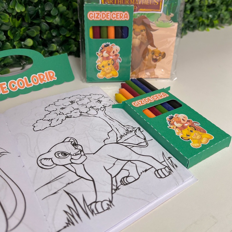 ENVIO RÁPIDO Kit Colorir Giz de Cera Rei Leão Personalizado Lembrancinha Revistinha Livrinho Pintura