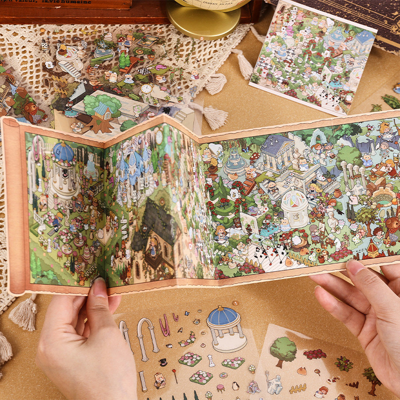 ENWEI 16 Unidades [Série Alice Fantasy] Adesivos De Paisagem À Prova D'água 3D Magic World Scroll Style Cute Animal Cart