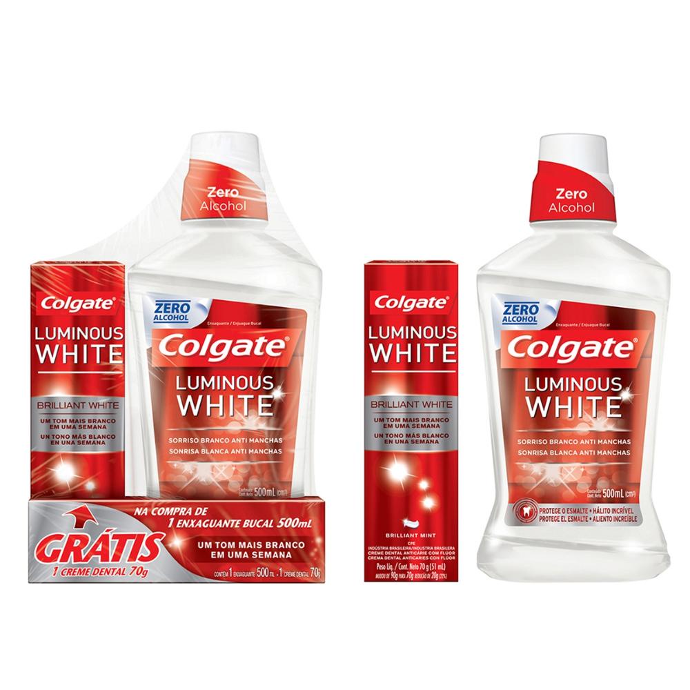 Enxaguante Bucal Colgate Luminous White 500ml - Grátis 1 Creme Dental
