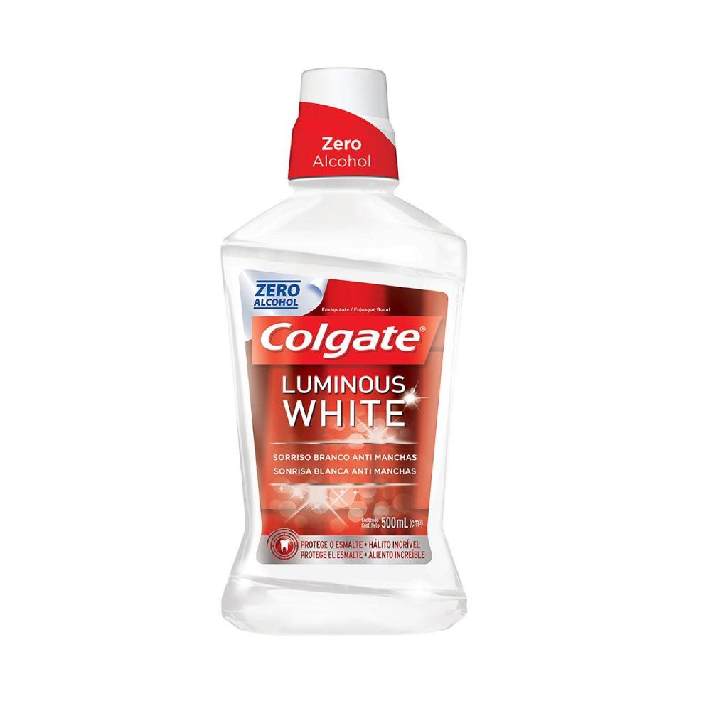 Colgate® Luminous White XD possui fórmula branqueadora que ajuda a manter seus dentes naturalmente brancos e prevenir a formação de novas manchas. Refresca o hálito por muito mais tempo Deixa os dentes naturalmente mais brancos Evita a formação de tártaro, gengivites e cáries Elimina as bactérias causadoras do mau hálito Encha a tampa até a linha contínua (20ml). Bocheche por 30 segundos e elimine o produto. Use o enxaguante após escovar os dentes ou sempre que desejar, ao menos 2 vezes por dia